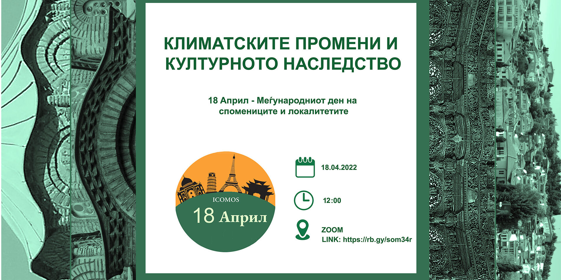 По повод 18 Април – Меѓународниот ден на спомениците и локалитетите, ИКОМОС Македонија со задоволство го најавува настанот на тема ,,Климатските промени и културното наследство “.